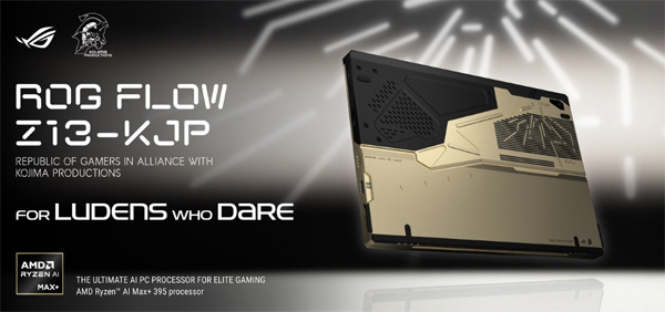 에이수스가 메탈기어 시리즈, 데스 스트랜딩으로 유명한 코지마 히데오 프로듀서가 설립한 게임 스튜디오 코지마 프로덕션(KOJIMA PRODUCTIONS)과 협업해 ‘ROG 플로우 Z13-KJP’ 게이밍 노트북과 한정판 주변 기기 라인업을 선보인다.