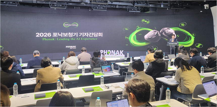 스위스 청각 브랜드 포낙이 2월 27일 DDP 디자인랩 2층 서울온 화상 스튜디오에서 기자간담회를 진행했다. 이날 행사 에서는 AI 기술을 통해 사람의 일상을 바꾸는 프리미엄 하이테크 라이프스타일 디바이스로 보청기가 재정의 되고 있다고 강조했다.