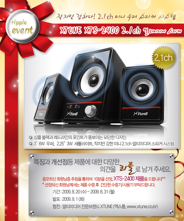 - 경품 : XTUNE XTS-2400 2.1채널 스피커 10개, 10명