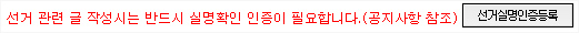 다시 한 번 말씀드리지만 선거관련 정보가 아닌 글작성 및 댓글의 등록은 실명인증 과정을 거치지 않고 이전과 동일하게 등록이 가능하오니 참고 부탁드립니다.
