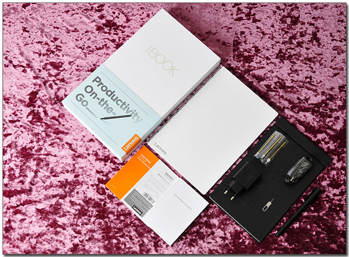 풀KIT 의 모습으로 전원 어댑터와 케이블, 매뉴얼, 보증서, 이젝트 핀 등이 포함되어 있으며 펜기능 사용을 위한 와콤펜, 3개의 리얼펜심, 북패드, 페이퍼 등이 추가로 제공된다.