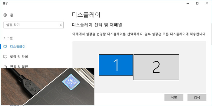MicroHDMI 단자를 지원해 모니터 연결이 가능하다. 상단의 사진은 QHD 해상도의 모니터를 연결한 모습으로 문제없이 인식하는 것을 확인할 수 있었다. 확장 모드를 통해 동영상과 웹서핑 등의 멀티테스킹이 가능한 것은 물론 복제 모드를 실행해 대화면을 보여 스케치 등을 할 수 있다.