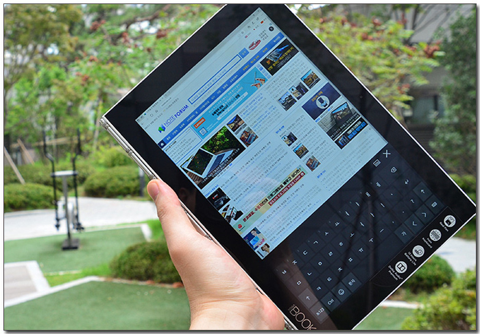 또한 10.1형 대화면 디스플레이에 IPS 패널을 탑재한 제품으로 선명한 영상을 즐길 수 있었다. (일반 노트북에 비하면 화면 크기가 작지만 이동성이 완전히 보장된 제품으로 스마트폰이나 태블릿PC와 비교하면 충분한 경쟁력을 가지고 있다.)