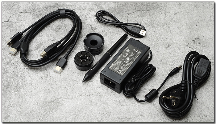풀KIT 의 모습으로 전문가형 모델답게 다양한 액세서리가 제공된다. 전원 어댑터와 케이블을 비롯해 스타일러스 펜과 받침대 (펜심과 펜심 리무버 장착) 등이 지원되며 사용설명서와 USB 메모리, USB 일체형 HDMI 케이블, 여분의 펜심, 케이블 타이, 전용 장갑 등이 포함되어 있다. (액정 보호필름은 기존과 달리 부착된 채로 출시된다.)
