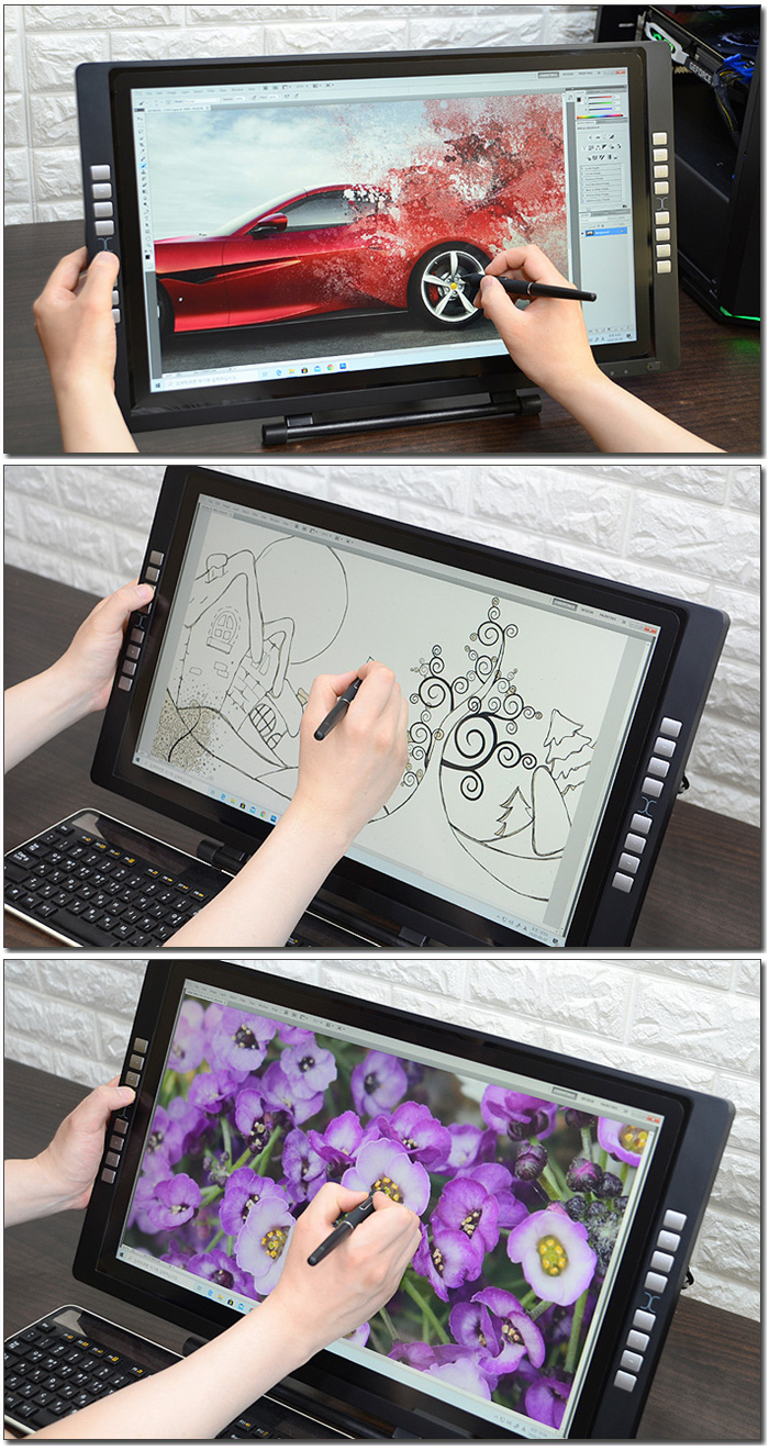 이 제품은 전문적인 용도로 사용하는 액정타블렛 답게 5080LPI 의 높은 터치해상도를 지원하고 8192 레벨의 압력감지 및 40도 펜 기울기 인식이 가능해 디테일한 작업에도 손색없는 모델로 실제 펜으로 그림을 그리는 듯한 사실감을 경험할 수 있다.