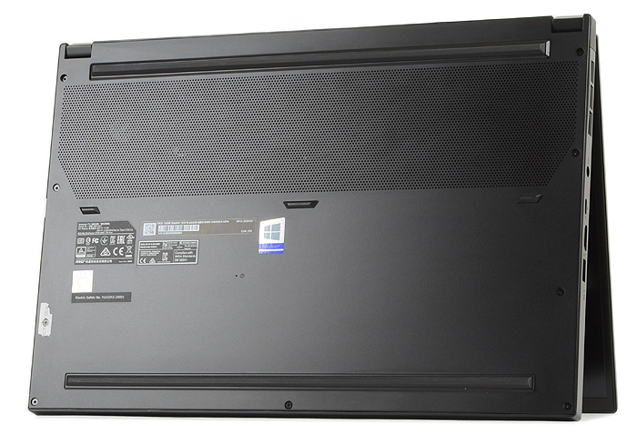 또한 1TB NVMe SSD 가 기본 장착되어 있을 뿐만 아니라 여분의 M.2 슬롯이 제공되며 2개의 8GB DDR4 (16GB) 메모리가 기본 장착된 것을 확인할 수 있다. 하단에는 도입부에서부터 강조한 것과 같이 99.9WHr (6578mAh) 리튬폴리머 배터리가 장착되어 긴 사용시간을 보장한다.