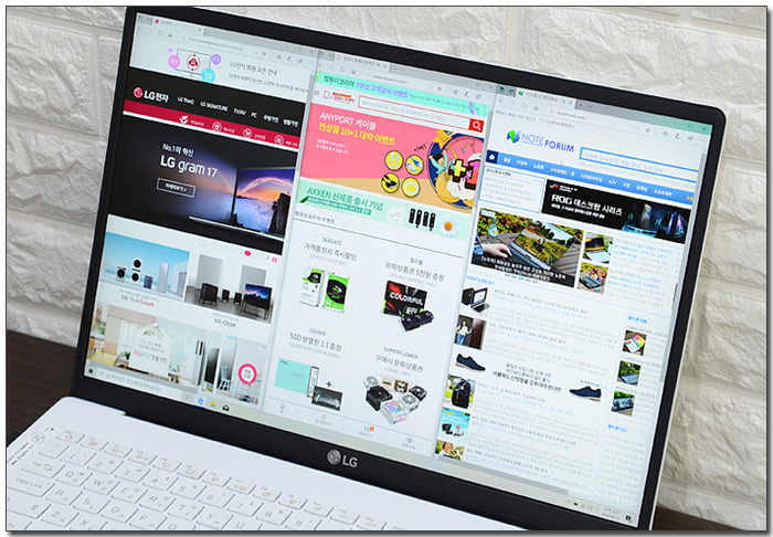 17형 대화면에 WQXGA 해상도, 슬림 베젤 적용으로 여유롭게 2.5~3개의 창을 띄어두고 멀티테스킹을 즐길 수 있다. 특히 16:10 비율을 지원해 웹서핑이나 오피스 사용이 많은 유저들은 큰 만족감을 느낄 수 있을 것이다.