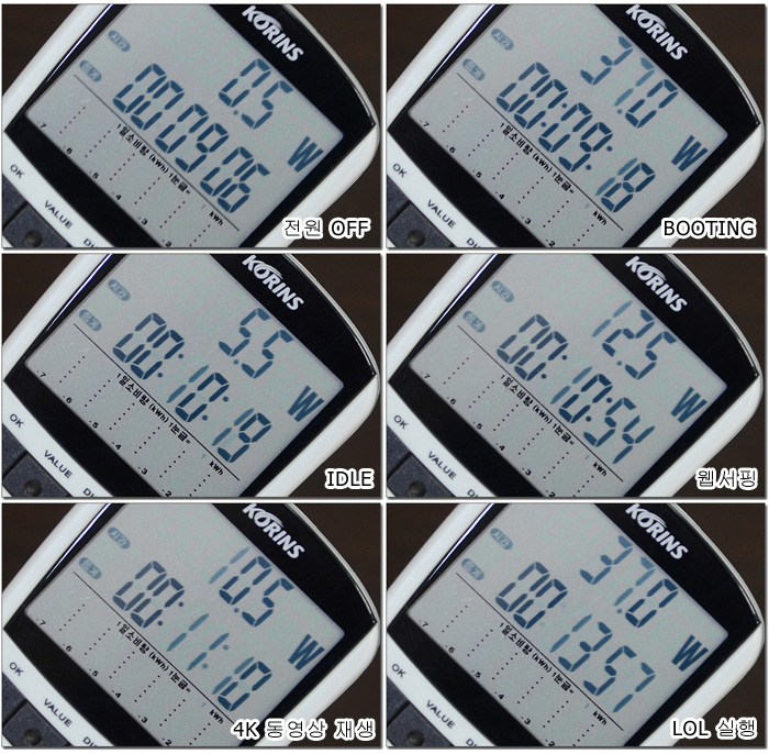 소비전력 테스트를 진행하고 있는 모습으로 기존 그램과 같이 저전력으로 구동되는 것을 확인할 수 있다. 대부분의 작업에서 20W 이내로 작동하며 게임에서만 30W 이상으로 작동한다. 전기세 걱정없이 노트북을 사용할 수 있을 것이다.