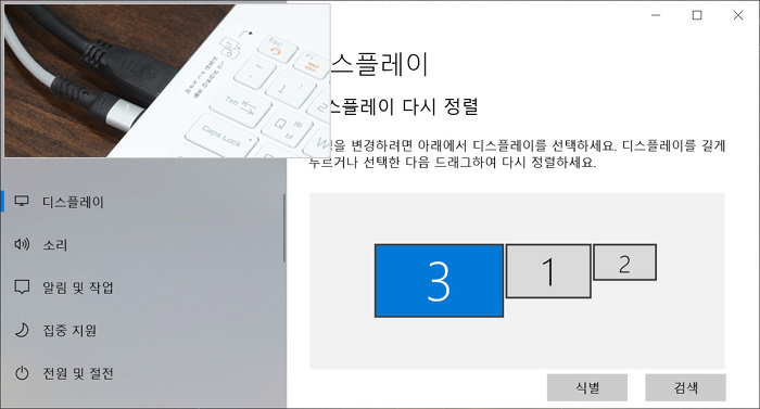 썬더볼트 3 단자가 영상 출력 기능을 지원해 트리플 디스플레이 활용이 가능하다. 상단의 사진은 HDMI 와 썬더볼트 3 단자를 이용해 2개의 모니터를 연결한 모습으로 문제없이 작동하는 것을 확인할 수 있었다. 특히 4K 모니터를 사용했는데 깔끔하게 연결되었다. (4K@60Hz 지원)