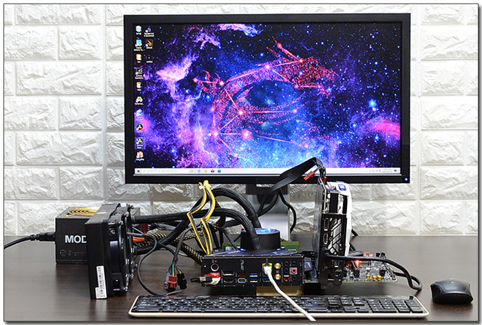 성능 테스트를 위해 시스템을 셋팅한 모습으로 원할하게 작동하는 것을 확인할 수 있었다. 특히 호환성이 뛰어나 업그레이드시 메인보드를 제외한 대부분의 기존 부품을 그대로 사용할 수 있을 것이다.