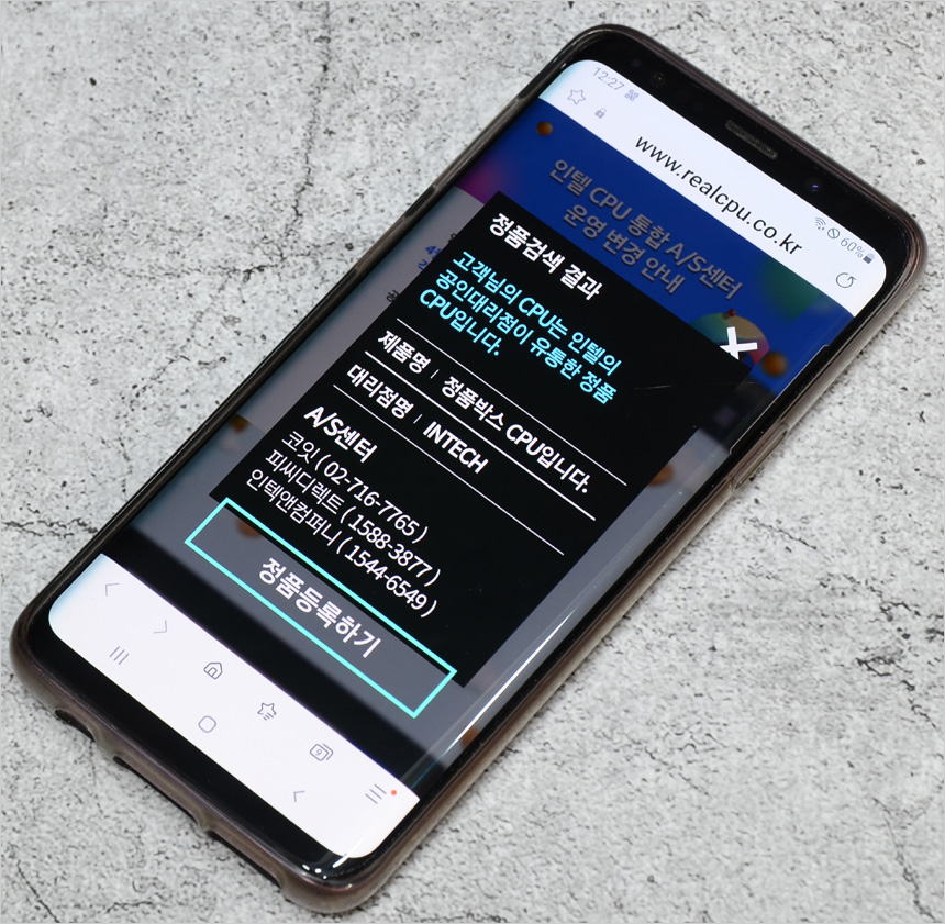 인텔 정품 CPU는 3사 공인 대리점을 통해 신속 정확한 점검과 빠른 교체가 가능하다. 박스에 부착된 QR코드를 스마트폰으로 스캔하면 정품 여부 및 A/S 센터 연락처 확인이 가능해 문제가 생겼을 때 빠르게 대응할 수 있다. @ 인텔 정품 CPU는 어느곳에서나 A/S가 가능하다. 단, 해당 공인대리점에서 유통한 제품이 아닐 경우 A/S 처리기간 이 다소 길어질 수 있다.