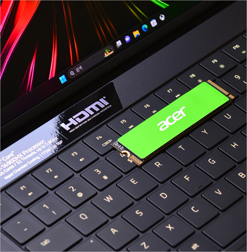 고급 단자부 지원으로 사용성을 높인점도 칭찬하고 싶다. C타입의 USB 3.2 Gen2x2 단자를 지원해 2,000MB/s 이상의 빠른 속도로 데이터를 전송할 수 있으며 HDMI 2.1 과 DP 1.4 단자가 제공되어 고해상도 모니터를 연결해 작업을 할 수 있다. 뿐만 아니라 2.5Gbps 의 초고속 이더넷 단자가 장착되어 웹을 통한 빠른 데이터 전송이 가능하다.