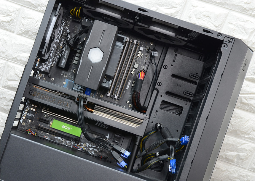 파워서플라이는 높은 안정성을 제공하는 것은 물론 모듈형으로 편의성까지 챙긴 MSI MPG A1000 PCIE5 80PLUS GOLD 제품을 사용했다. 1000W 의 높은 출력을 지원해 RTX 4090 과 같은 하이엔드 그래픽카드 사용도 가능하다.