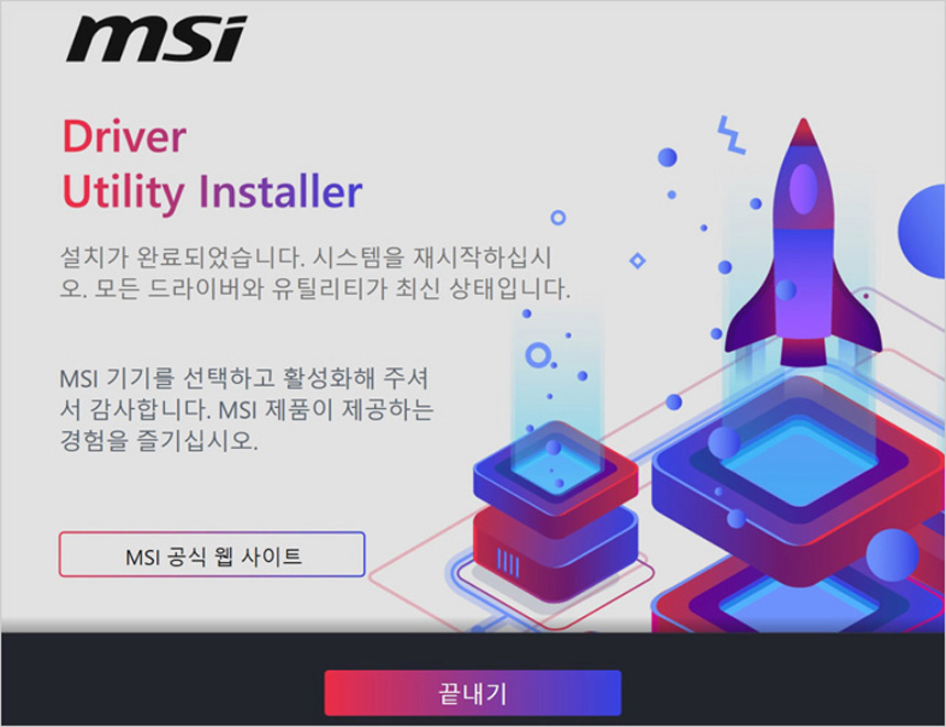 PC를 조립하고 바이오스에 진입한 모습으로 정상적으로 CPU와 메모리가 인식되는 것을 확인할 수 있었다. 인터넷에만 연결되어 있으며 MSI 드라이버 유틸리티 인스톨러가 자동 실행되어 손쉽게 드라이버를 설치할 수 있다. 홈페이지에 방문해 일일이 드라이버를 다운받을 필요가 없다.