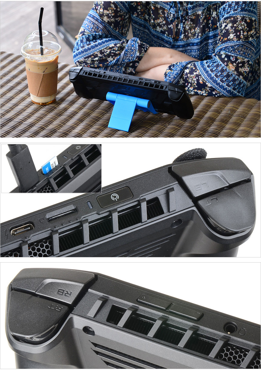 노트북 등과 달리 항상 손에 들고 사용해야 하기 때문에 그립감이 상당히 중요하다. 이 제품은 편안한 사용을 위해 인체공학적 설계가 적용된 모델로 편하게 잡을 수 있도록 양 측면에 곡선을 적용했으며 스틱이나 트리거 등의 각종 버튼부를 손쉽게 누를 수 있었다. 성인 남성 뿐만 아니라 손이 작은 여성들이나 청소년들도 편하게 손에 쥐고 게임을 즐길 수 있을 것이다.