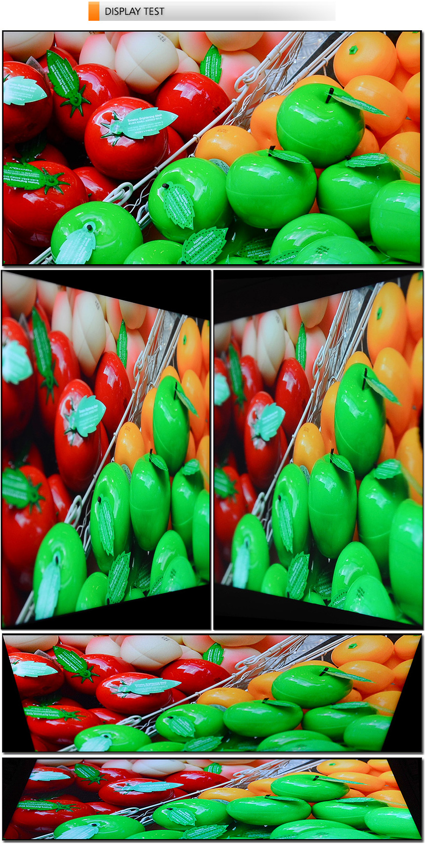 IPS 타입 디스플레이를 탑재해 시야각으로 인한 불편없이 선명한 영상을 즐길 수 있다. 상단의 사진은 시야각 테스트를 진행하고 있는 모습으로 극단적인 각도에서도 반전이나 채도저하가 발생하지 않았다.