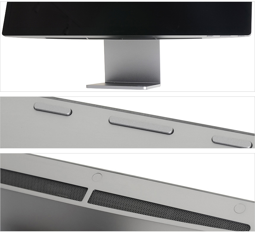 PC 하단부의 모습으로 전원 버튼과 볼륨 버튼, 외부입력 버튼이 설치되어 있고 중앙에는 AKG 쿼드 스피커가 장착된 것을 확인할 수 있다. 높은 출력을 제공하는 것은 물론 돌비 애트모스를 지원해 노트북이나 모니터 스피커와는 확연히 퀄리티 높은 사운드를 즐길 수 있다. 동영상이나 음악감상, 게임 플레이시 높은 몰입감을 경험할 수 있을 것이다.