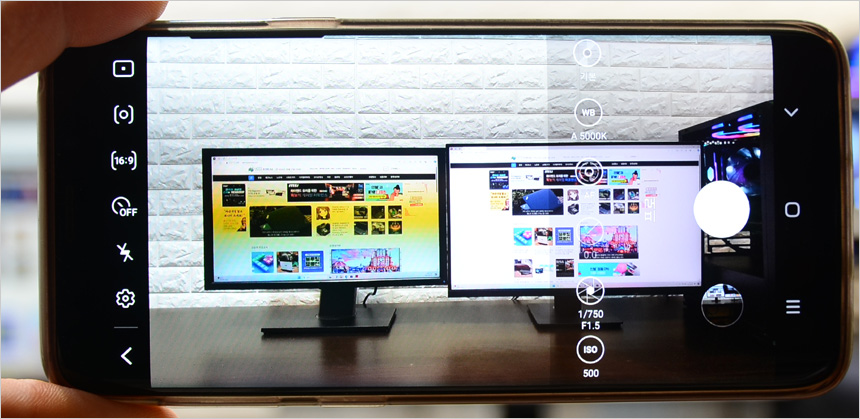 스마트폰을 이용하면 모니터의 플리커 현상을 확인할 수 있다. (프로 모드를 선택하고 셔터스피드 1/300 이상으로 셋팅) 테스트용 모니터는 플리커 현상이 발생하는데 반해 27USD55는 깜빡임 없이 부드러운 영상을 재생해 주었다. (동영상에서 자세히 확인할 수 있다.)
