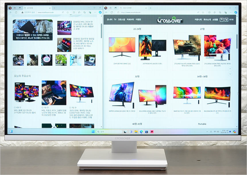 27형 크기에 FHD 해상도를 지원하는 모델로 사진과 같이 2개의 창 정도는 여유롭게 뛰어두고 사용할 수 있다. (2개 이상의 창을 띄어두고 사용해야 할 경우 2대를 구입해 듀얼모니터로 활용하기 바란다.)