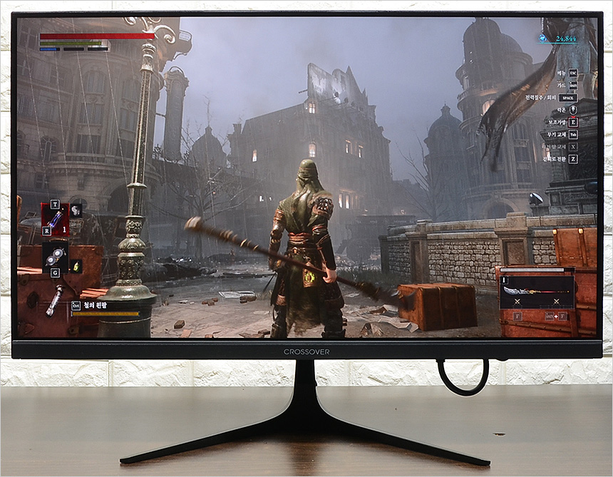 디아블로 4와 P의 거짓을 플레이 하고 있는 모습으로 Fast IPS 패널을 사용한 모델답게 선명한 컬러감을 보여 주었으며 높은 밝기로 어두운 맵에서도 배경과 캐릭터을 확연하게 구분할 수 있었다. 또한 24.5형 컴팩트 제품이지만 슬림 베젤 적용으로 한차원 높은 몰입감을 선사했으며 디테일도 상당히 뛰어난 것을 확인할 수 있었다.