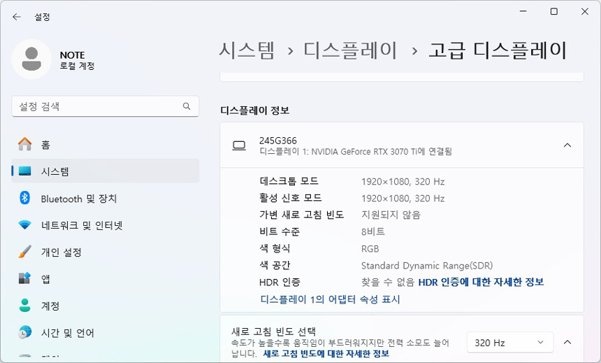 이 제품은 320Hz 주사율을 지원해 프레임을 300 이상 확보해야 한다. 보급형 그래픽카드로는 300프레임 확보가 쉽지 않기 때문에 모니터 성능을 100% 활용하기 위해서는 고성능 그래픽카드를 사용해야 한다. 일반 그래픽카드를 사용할 경우 옵션을 낮추고 업스케일링 기술을 적극 활용해 프레임을 확보하기 바란다.