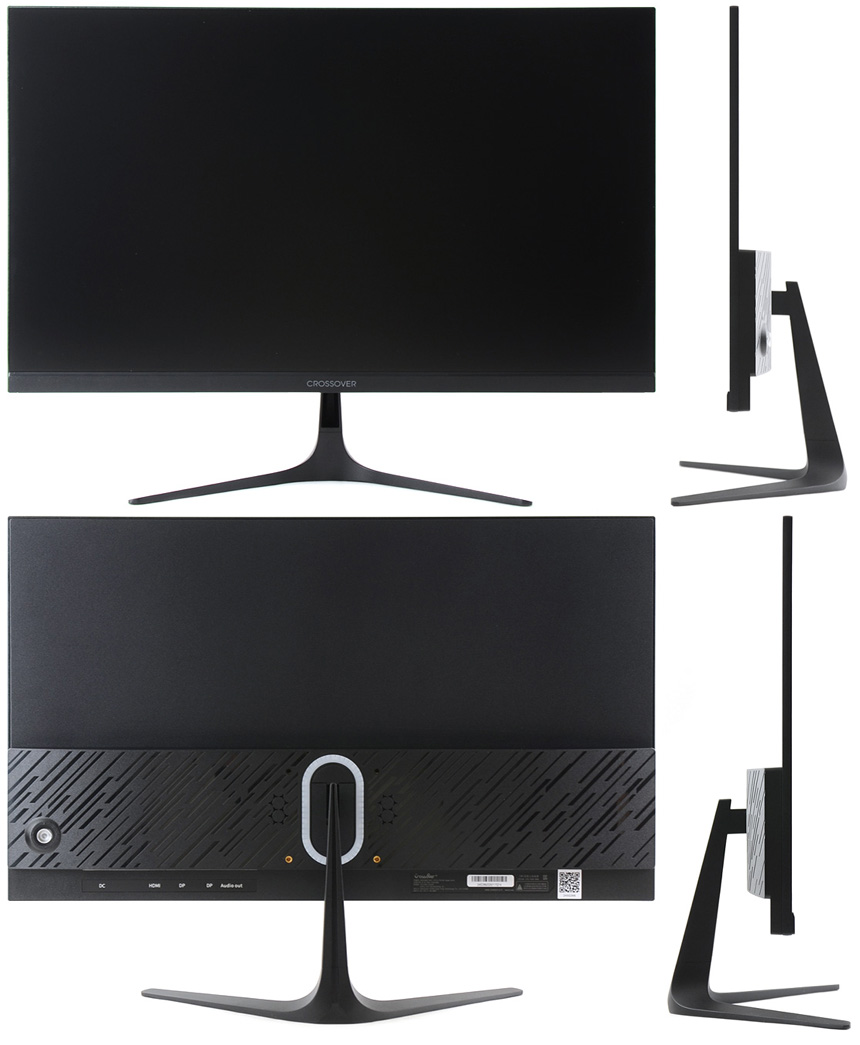 모니터 하단부의 모습으로 중앙에 크로스오버 레터링이 세겨진 것을 확인할 수 있다. 이 제품은 사용자의 눈건강 까지 고려한 모델로 깜빡임으로 인한 눈의 피로를 최소화 하는 플리커 프리, 피로나 시력저하를 유발하는 블루라이트 감소 등의 아이케어 기술을 지원해 장시간 게임이나 작업을 편하게 실행할 수 있다.