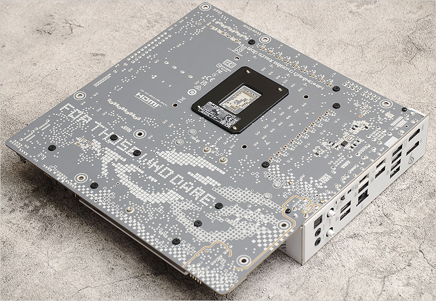메인보드 바닥면의 모습으로 깔끔하게 구성된 것을 확인할 수 있다. (메인보드 바닥면을 잡을 때 손에 상처가 날 수 있기 때문에 장갑을 착용하기 바란다.)