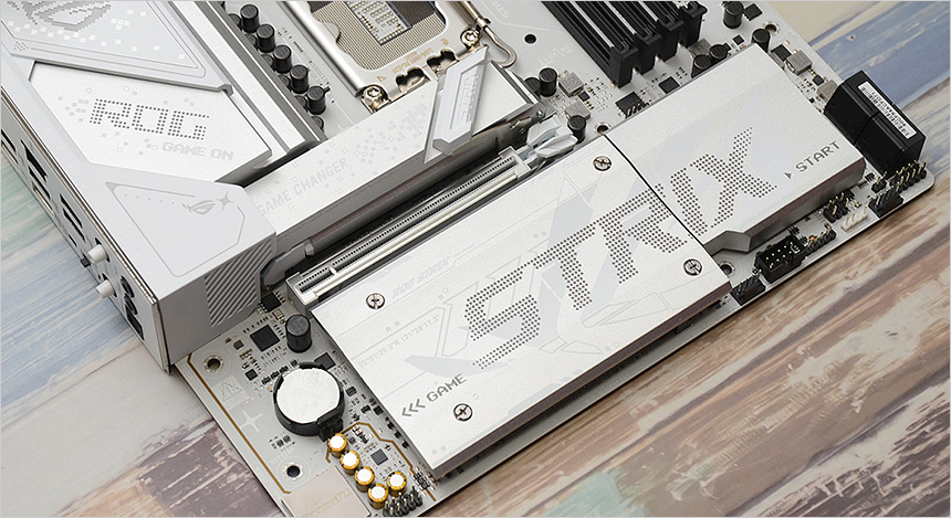 PCIe 슬롯이 많은 일반 메인보드와 달리 M.2 슬롯의 수를 늘리고 PCIe 슬롯은 그래픽카드 장착을 위한 PCIe 5.0x16 만 지원한다. 강화금속으로 구성되어 무거운 그래픽카드 장착시 파손이나 휘어짐 등을 방지하며 그래픽카드를 기울여 쉽게 뺄 수 있도록 Q릴리즈 슬림을 제공하고 있다.