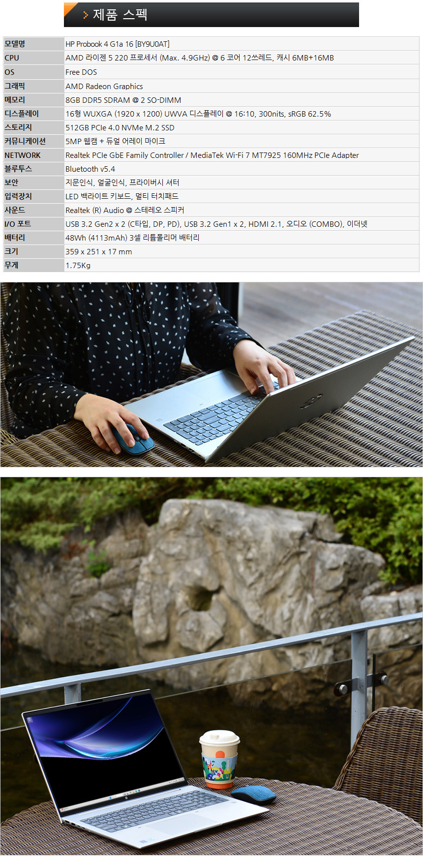 뿐만 아니라 인텔의 Wi-Fi 6E 무선랜카드가 장착되어 고속 무선랜과 블루투스 사용이 가능하고 지문인식 센서와 HD웹캠이 설치되어 있으며 윈도우 11 Home가 기본 설치되어 셋팅의 번거로움 없이 구입즉시 사용할 수 있다.