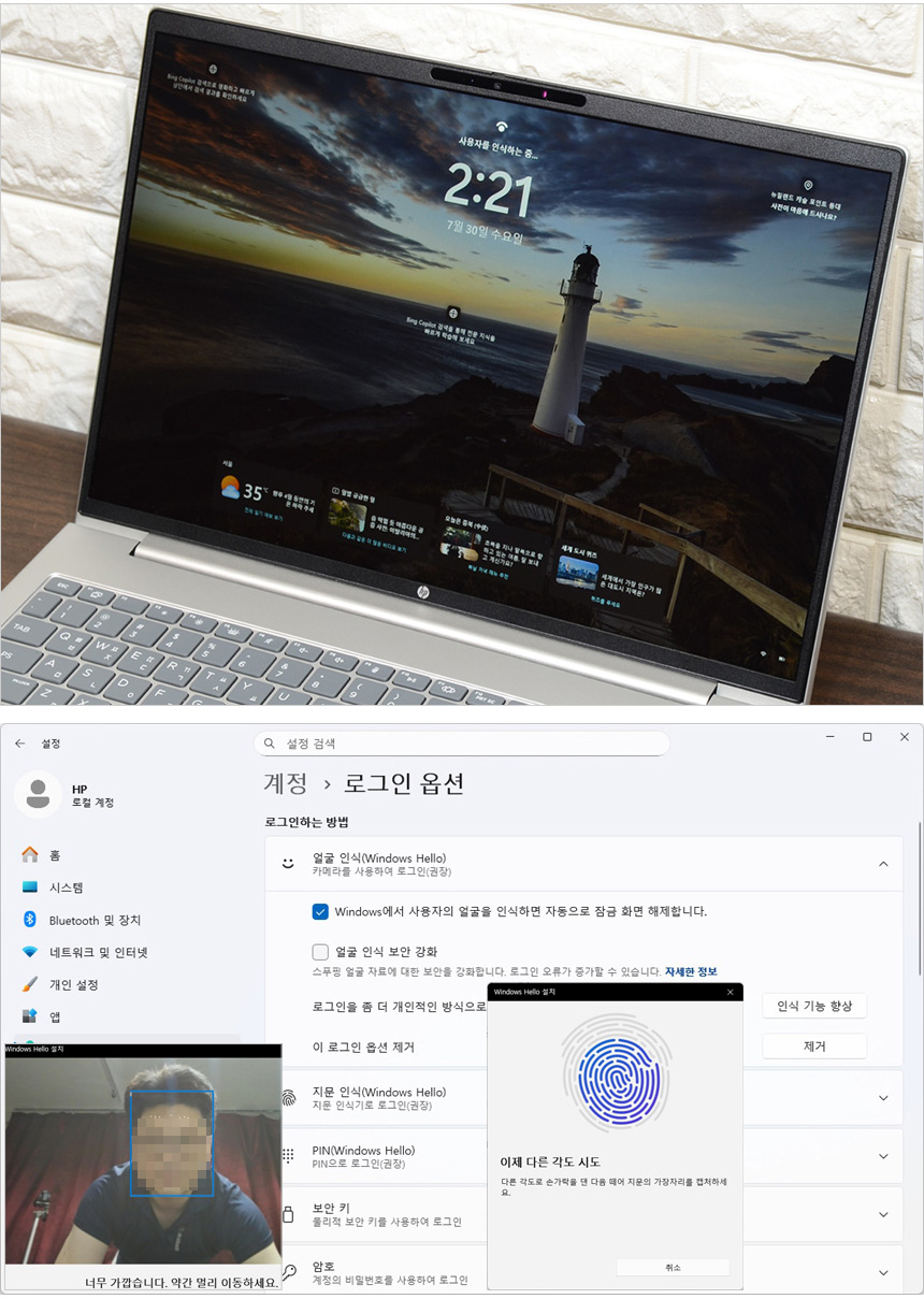 지문인식 센서를 장착해 보안성을 높였다. 설정-계정에 있는 로그온 옵션에서 윈도우즈 헬로를 사용할 수 있으며 지문을 등록해 빠른 로그인이 가능하다. 보안이 요구되는 외부에서 유용하게 활용할 수 있을 것이다.