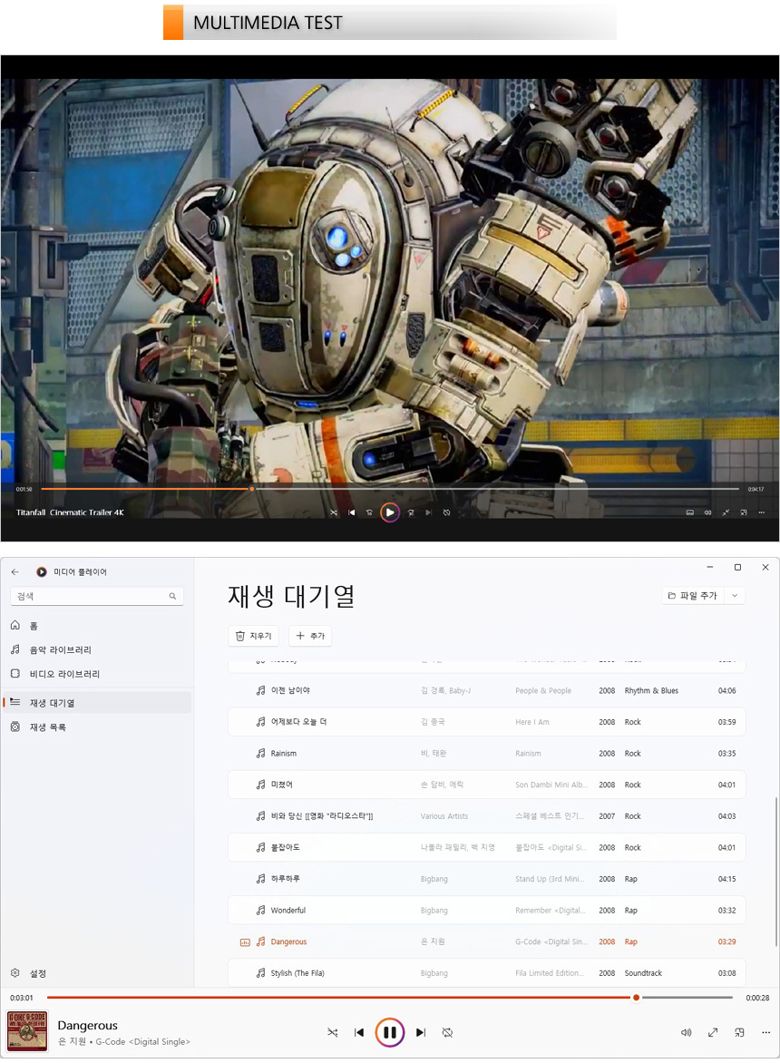 4K 동영상을 이용해 멀티미디어 테스트를 진행하고 있는 모습으로 800nits 의 높은 밝기를 지원하는 AMOLED 패널을 사용해 밝고 선명한 영상을 즐길 수 있었다. (너무 밝아 실내에서는 밝기를 내려야 할 정도였다.) 스테레오 스피커가 장착된 모델답게 사운드 퀄리티도 뛰어나 몰입감도 높여주었다. 스마트폰과 비교되는 7형 대화면을 지원하는 제품으로 유튜브나 고화질 동영상 감상용으로도 유용하게 사용할 수 있을 것이다.