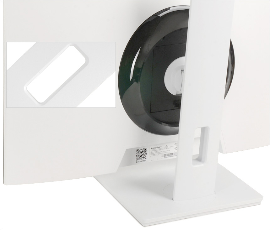바닥면의 모습으로 원할한 공기 유입을 위해 중앙에 통풍구가 설치되어 있으며 매크로 버튼이 설치된 것을 확인할 수 있다. 또한 양쪽의 손잡이 부분은 인체공학적으로 디자인 되어 편하게 손에 쥘수 있었으며 패턴이 적용되어 땀으로 인해 늘러붙는 현상이 발생하지 않았다. 또한 통풍구 상단에 RGB LED를 적용해 아름다운 조명 효과를 즐길 수 있다. (전용 S/W를 통해 조명설정이 가능하다.)