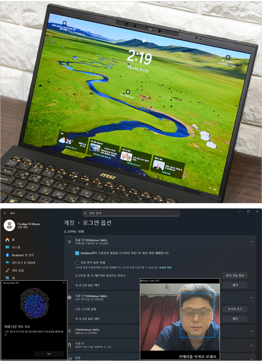 상단에서 언급한 것과 같이 얼굴과 지문인식 로그인을 지원한다. 설정-계정에 있는 로그온 옵션에서 윈도우즈 헬로를 실행해 얼굴을 등록할 수 있으며 인식율도 뛰어나 편하게 사용할 수 있다. (동영상을 참고하기 바란다.)