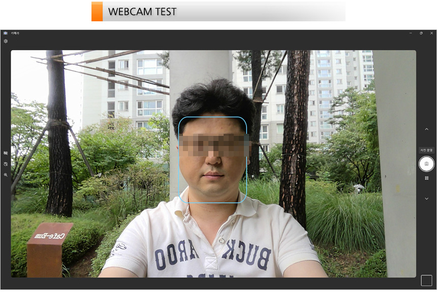 5MP 웹캠의 화질을 확인하고 있는 모습으로 보급형 노트북에 설치된 HD 웹캠을 압도하는 선명함과 디테일을 보여주었다. 화상회의는 물론 촬영 등의 용도로 유용하게 활용할 수 있을 것이다.