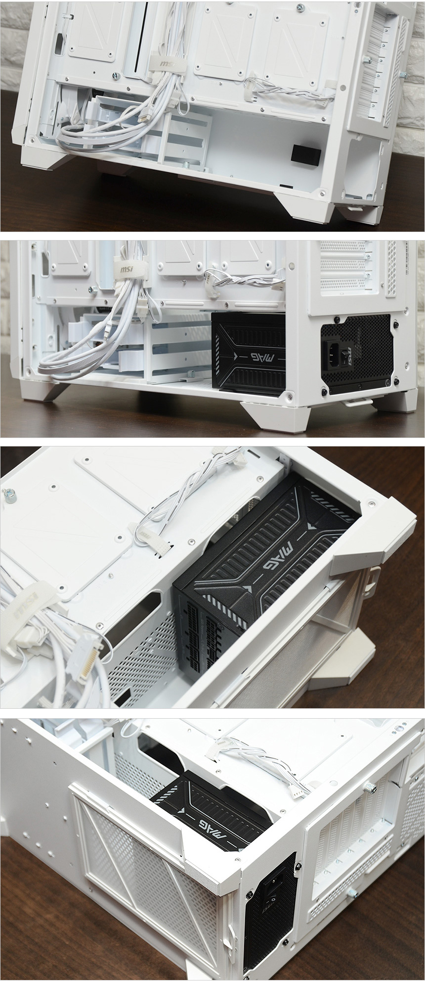 PC 케이스에 파워 서플라이를 장착한 모습으로 풀모듈러 제품으로 쉽게 장착할 수 있었으며 (장착후 케이블을 연결할 수 있어 상당히 편했다.) 컴팩트한 크기로 여유공간이 상당한 것을 확인할 수 있다. 대부분의 PC 케이스에 쉽게 장착해 사용할 수 있을 것이다.