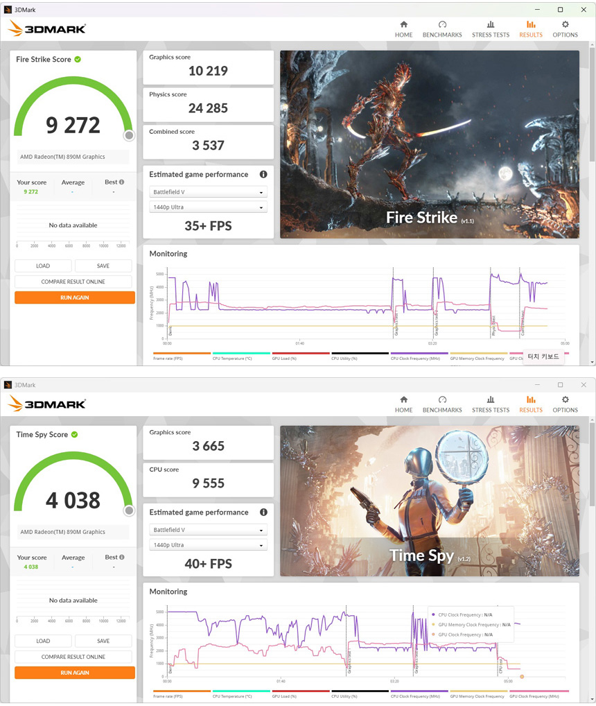 3DMARK를 이용해 3D 성능을 확인하고 있는 모습으로 최신 게임도 옵션 조정을 통해 즐길 수 있을 정도로 높은 스코어를 보여주었다.