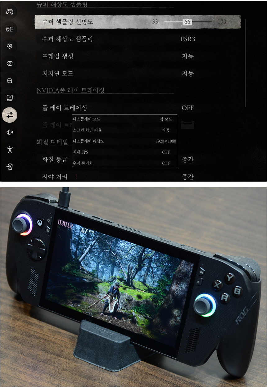 스텔라 블레이드를 플레이 하고 있는 모습으로 104-122 프레임을 보여주어 부드럽게 게임을 즐길 수 있었다. (참고로 스텔라 블레이드는 핸드헬드를 위한 전용 그래픽 프리셋을 제공한다. 실제 게임을 즐길 경우 중간 옵션에 두지 말고 핸드헬드 옵션을 선택하기 바란다.)