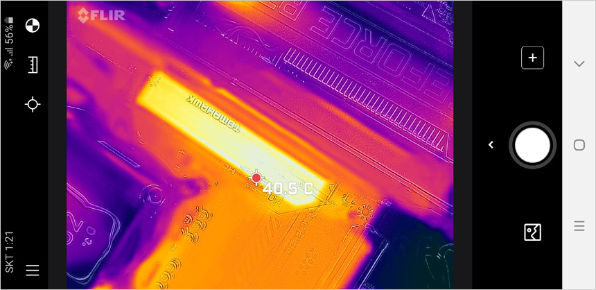 쉴드프로저를 제공해 SSD의 스로틀링 현상을 방지할 수 있다. 상단의 사진은 열이 많은 PCIe 4.0 NVMe SSD의 표면온도를 확인하고 있는 모습으로 (크리스탈 디스크마크 읽기/쓰기 3회 실행후 온도) SSD 만 장착되어 있을 때 표면 온도가 70도 후반까지 올라가는데 반해 히트싱크를 장착하면 표면 온도가 대폭 낮아지는 것을 확인할 수 있었다.
