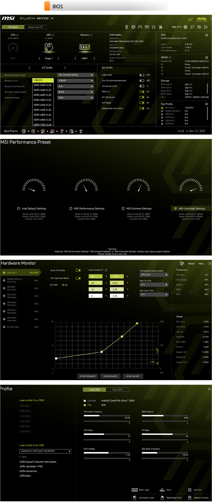 전용 S/W 인 MSI 센터를 사용하면 손쉽게 PC 환경 설정이 가능하며 BIOS 가 직관적으로 디자인 되어 초보자도 손쉽게 사용할 수 있는점도 무척 마음에 드는 부분이다. 특히 메모리 오버를 어렵게 느끼는 유저들이 많은데 이 제품은 XMP 는 물론 Memory Try It을 통해 튜닝 메모리를 손쉽게 최적화 할 수 있다.
