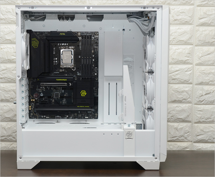 M-ATX 규격의 박격포 메인보드와 크기를 비교한 모습으로 세로 길이에서 분명한 차이를 느낄 수 있었다. 또한 빅타워 PC케이스에 메인보드를 장착해 보았는데 간섭없이 깔끔하게 장착되는 것을 확인할 수 있었다. (일부 미들타워 PC케이스에서는 간섭이 발생할 수 있다.) 참고로 다양한 부품이 장착되기 때문에 넉넉한 여유공간이 필수적이다. 이점 고려해 PC케이스를 선택하기 바란다.