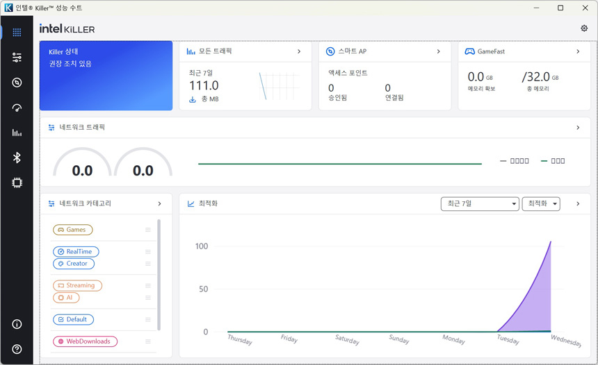 인텔 킬러 유/무선 랜이 장착된 모델답게 전용 애플리케이션을 제공해 손쉽게 네트워크를 설정할 수 있다. 또한 노턴 평가판을 제공해 멀웨어 등으로부터 시스템을 보호할 수 있다.