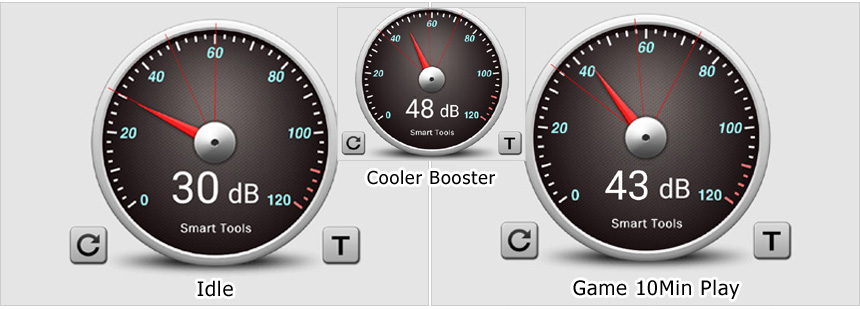 팬소음 테스트를 진행하고 있는 모습으로 아이들이나 캐주얼한 작업에서는 생활소음에 묻혀 팬소음이 거의 들리지 않았으며 게임을 실행하면 팬이 빠르게 동작해 팬소음이 커지는 것을 확인할 수 있었다. 팬이 최대 속도로 동작하는 쿨러부스트를 실행하면 48dB 까지 팬소음이 커지는 것을 확인할 수 있었다. (예상했던 것보다 조용한 편이었다.) @ 측정값은 사무실의 생활소음을 포함한 팬소음이다. 이점 참조 바란다.