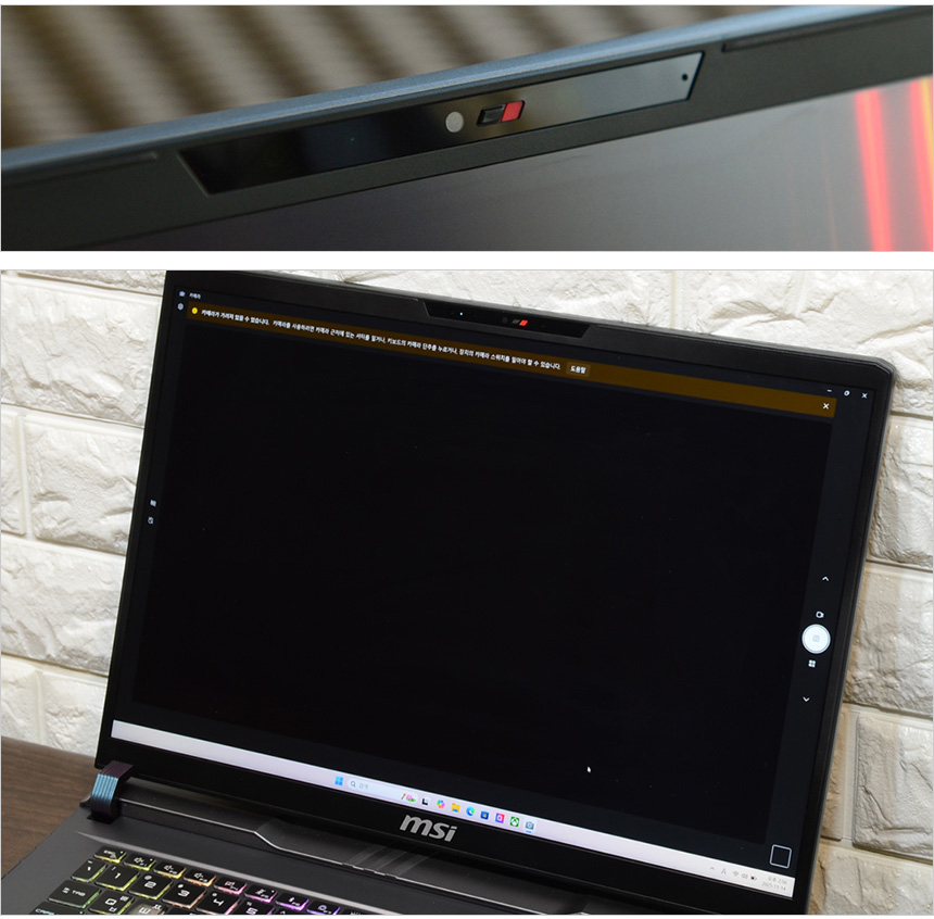 웹캠을 이용한 비주얼 해킹이나 사생활 옅보기를 원천적으로 차단할 수 있도록 카메라에 프라이버시 셔터가 장착했다. 물리적으로 카메라를 가려주기 때문에 해킹으로 노트북 권한을 획득 하더라도 사용자나 주변 상황을 전혀 볼수 없다. (동영상을 통해 자세히 확인하기 바란다.)