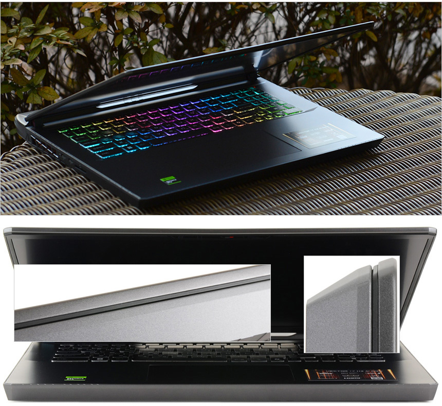노트북 디자인은 MSI 프리미엄 게이밍 노트북 답게 상당히 고급스러운 것을 확인할 수 있다. 근육질의 운동선수를 연상시키는 특유의 볼륨감이 인상적이었으며 메탈 섀시를 사용해 내구성을 한층 높였다. 특히 지문이나 먼지가 잘 묻어나지 않아 깔끔하게 노트북을 관리할 수 있으며 키보드의 RGB 백라이트 적용, 삼각 패턴 & 블루컬러 포인트 등을 적용한 바닥면 설계로 일반 노트북과 차별화를 꾀했다.