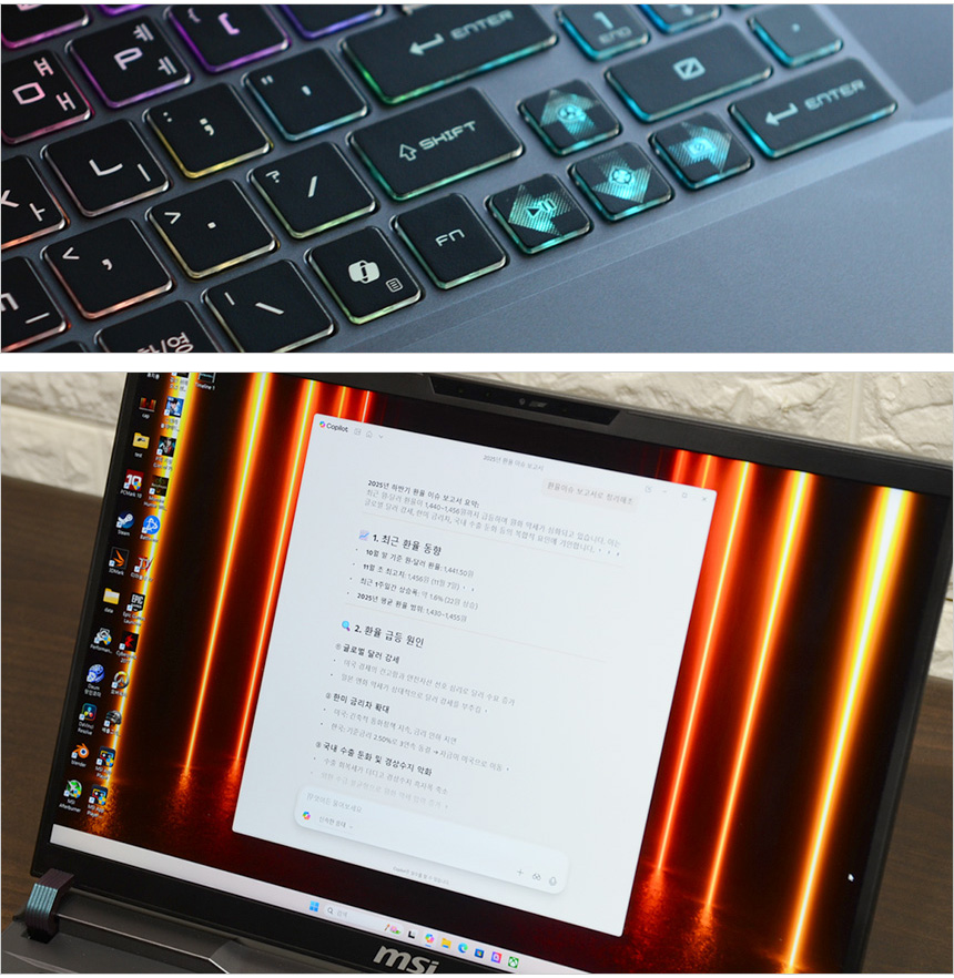 NPU를 탑재한 AI 특화 프로세서를 사용해 전문가용 S/W 는 물론 AI 용으로도 유용하게 활용할 수 있다. 특히 MS 코파일럿 전용키를 지원해 편하게 사용할 수 있다. (일반 노트북과 달리 높은 성능을 필요로 하는 AI 프로그램도 부드럽게 사용할 수 있다.) @ 업무에서 많은 도움을 받고 있다. AI 가 막연하게 느껴진다면 가장 먼저 코파일럿을 활용해 보기 바란다. 업무나 학습에서 많은 도움을 받을 수 있을 것이다.