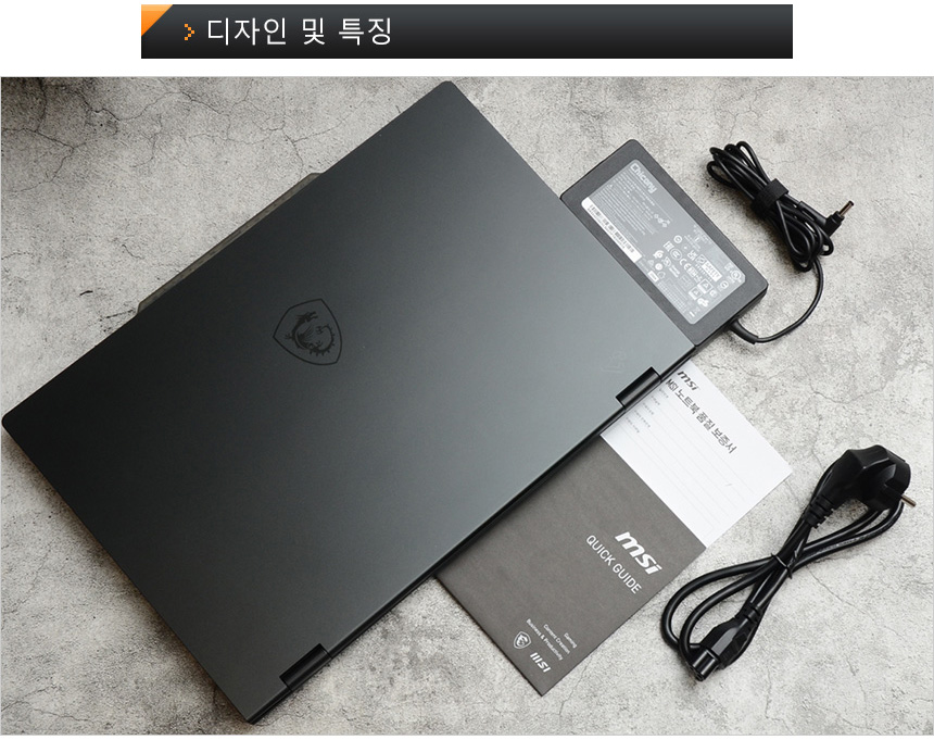 기본 제공되는 액세서리의 모습으로 120W 전원 어댑터와 전원 케이블을 비롯해 퀵 매뉴얼과 보증서가 포함된 것을 확인할 수 있다.