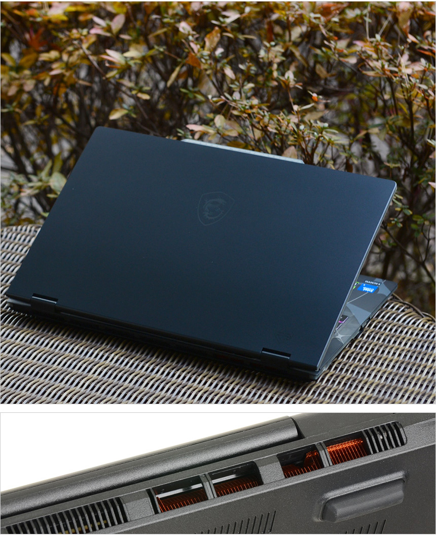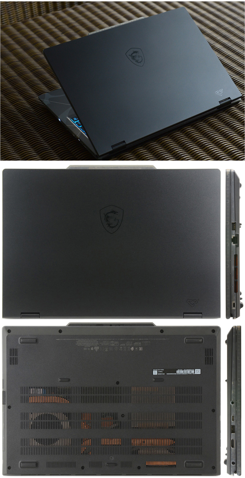 노트북 후면부의 모습으로 뜨거운 열이 방출되는 통풍구가 설치된 것을 확인할 수 있다. 참고로 이 제품은 발열을 넓게 분산시켜 냉각 효율을 한층 높인 히트파이프 설계로 스로틀링 등의 불편없이 게임이나 영상편집 등을 장시간 실행할 수 있다.