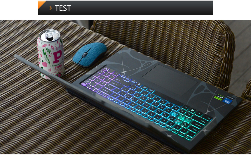 키보드의 모습으로 15.6형 대화면 노트북 답게 텐키가 포함된 풀사이즈 키보드가 장착되어 있다. 특히 키캡 테두리 부분까지 조명이 적용되어 확연한 구분감을 제공하며 단색의 백라이트를 지원하던 전작과 달리 4존 RGB 백라이트를 지원해 아름다운 조명 효과를 즐길 수 있었다. 또한 게이밍 노트북 답게 WASD 키에 포인트를 주어 구분감을 높인것도 마음에 든다.