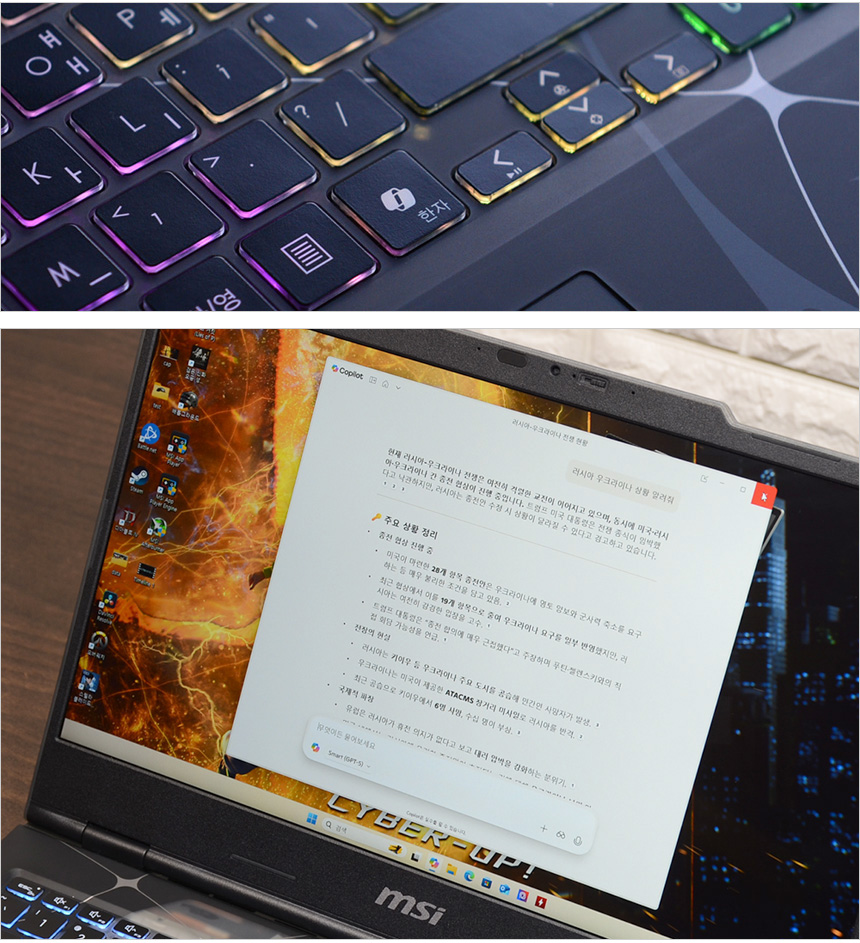 MS 코파일럿 전용키를 지원해 편하게 사용할 수 있다. 상단의 사진은 코파일럿을 실행한 모습으로 부드럽게 작동하는 것을 확인할 수 있었다. AI 가 막연하게 느껴진다면 가장 먼저 코파일럿을 활용해 보기 바란다. 업무나 학습에서 많은 도움을 받을 수 있을 것이다.