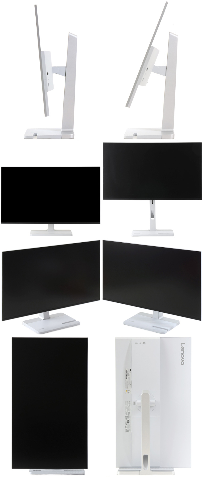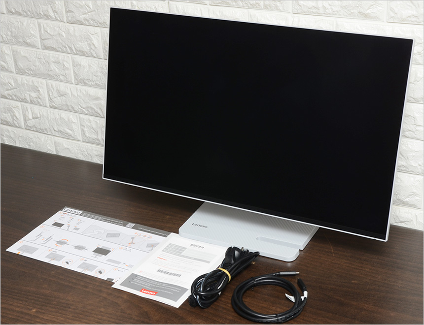 모니터의 디자인은 고급형 모델답게 상당히 세련된 것을 확인할 수 있다. 블랙컬러 일색의 일반 모니터들과 달리 많은 레노버 제품들에 적용되고 있는 클라우드 그레이 컬러를 적용해 밝고 화사한 느낌을 선사하며 가격에 걸맞는 높은 마감 완성도로 고급스러운 느낌을 자아낸다. 또한 전면부를 심플하게 구성해 작업시 시선이 분산되지 않았다.